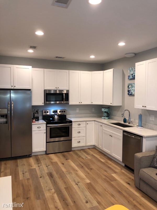 There is one queen bedroom downstairs with full bath, and 2 bedrooms upstairs including the queen guest and king master, both with full baths. Nice courtyard in the back under a 50 ft Magnolia Tree to relax and enjoy the tranquility. Includes grill if desired.
